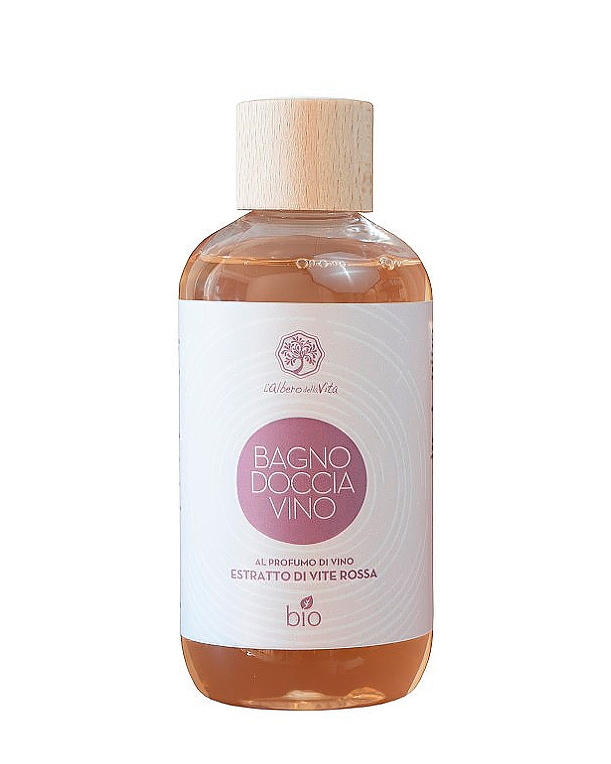 BAGNODOCCIA al profumo di Vino con estratti di Vite Rossa Biologica e tensioattivi di origine vegetale .