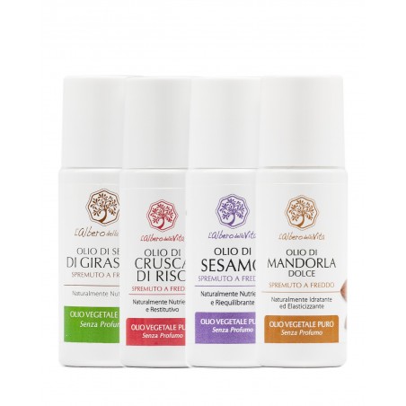 I Quattro Tesori: Kit Esplorativo Oli Puri. Scopri la versatilità della natura con il nostro esclusivo campionario di oli vegetali spremuti a freddo. Quattro elisir puri, estratti con metodi meccanici per preservare ogni singola vitamina e acido grasso essenziale: