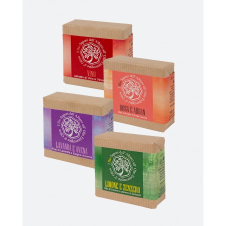 BIO SAPONE AL VINO Con estratto di Vino e Vinaccioli. Sapone artigianale fatto sapientemente a mano col metodo della saponificazione a freddo. Dalle vigne Umbre nasce l’ispirazione di questo sapone dal profumo inebriante e stimolante. Grazie alle note proprietà antiossidanti e rigeneranti dell’uva, all’unione col pregiato olio di Vinaccioli, ristruttura e rinnova tutti i tipi di pelle. La sua soffice e profumata schiuma, lascia una sensazione di intensa morbidezza e nutrimento. A base di oli vegetali Biologici ed estratto di Vino rosso è un sapone adatto a tutti i tipi di pelle anche le più delicate.